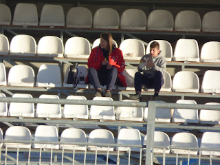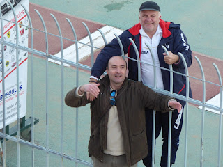 Μετα την λήξη του αγώνα ο προπονητής του Μεσολόγγι 2008 Γιάννης Γουλής με τον φίλο του Χασάπη Ακη [παλιός φοιτητής στο ΤΕΙ Μεσολόγγίου απο το Αργος]...